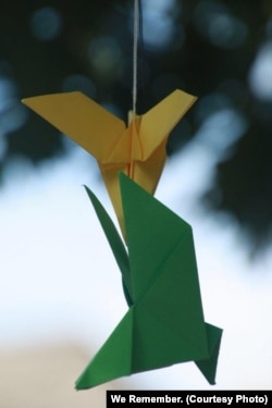 На завяршэньне жывы мэмарыял быў упрыгожаны папяровымі птушкамі.