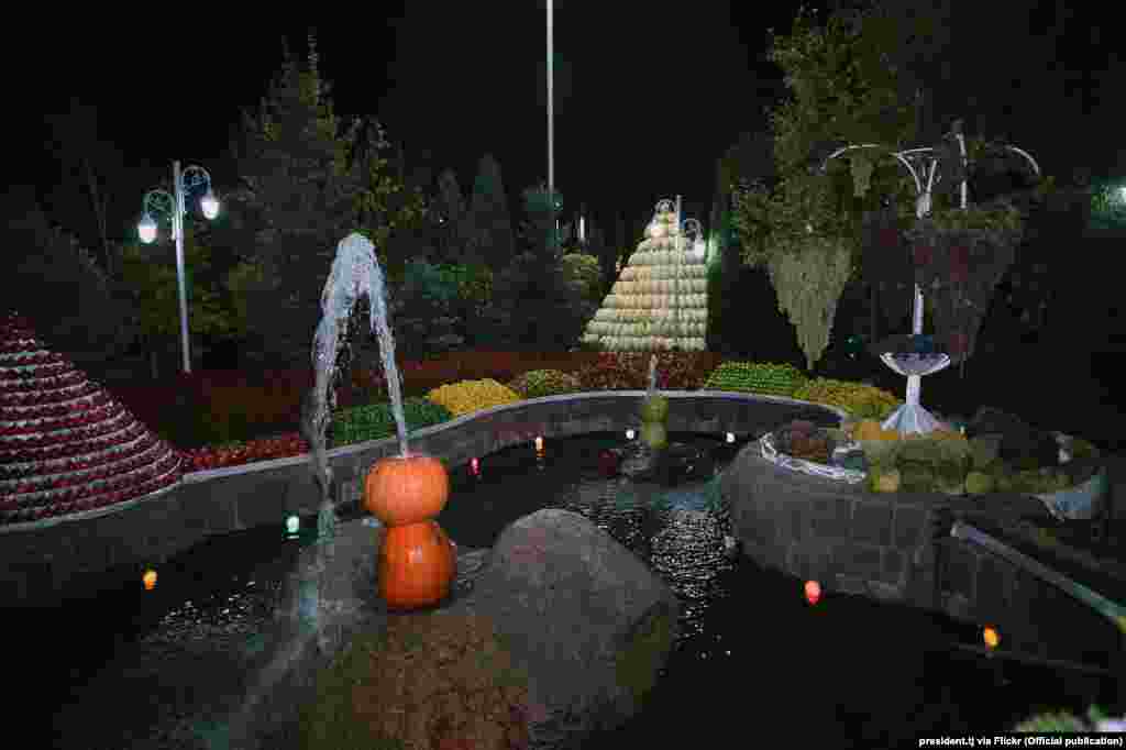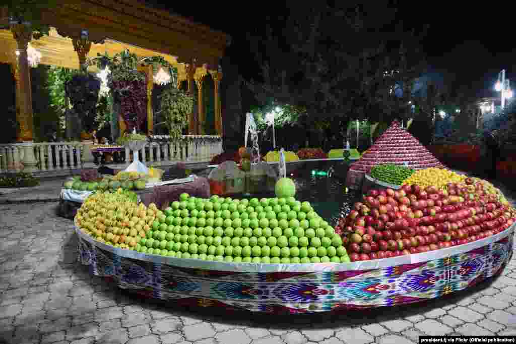 Тэрыторыю ўрадавай рэзыдэнцыі ўпрыгожылі інсталяцыямі з садавіны, якія вырошчваюць у Таджыкістане