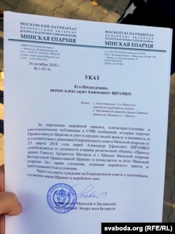 Сёньня ў Менскім эпархіяльным упраўленьні было агучана афіцыйнае рашэньне адносна сьвятара Аляксандра Шрамко, якому вусна забаранілі служыць падчас візыту ў Беларусь патрыярха Кірыла.