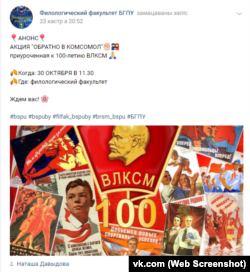 Сьвяткаваньне 100-годзьдзя камсамолу адбываецца ў многіх ВНУ Беларусі. Як пішуць самі студэнты ў сацыяльных сетках, часам яно «дабраахвотна-прымусовае».