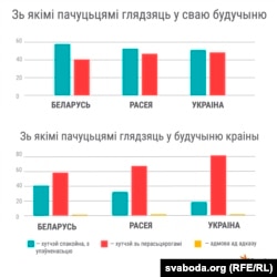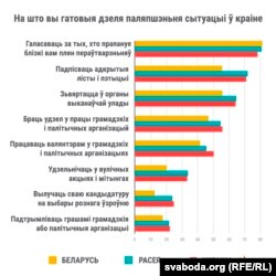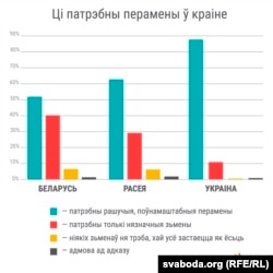 «У Беларусі ўсё, што зьвязана з публічным выказваньнем сваёй пазыцыі, набірае меншы працэнт у параўнаньні з адказамі расейскіх і ўкраінскіх рэспандэнтаў», — пішуць аўтары дасьледаваньня.
