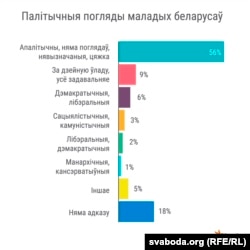 Дасьледаваньне чарговым разам паказала, што беларуская моладзь застаецца вельмі апалітычнай у параўнаньні з расейцамі і ўкраінцамі.