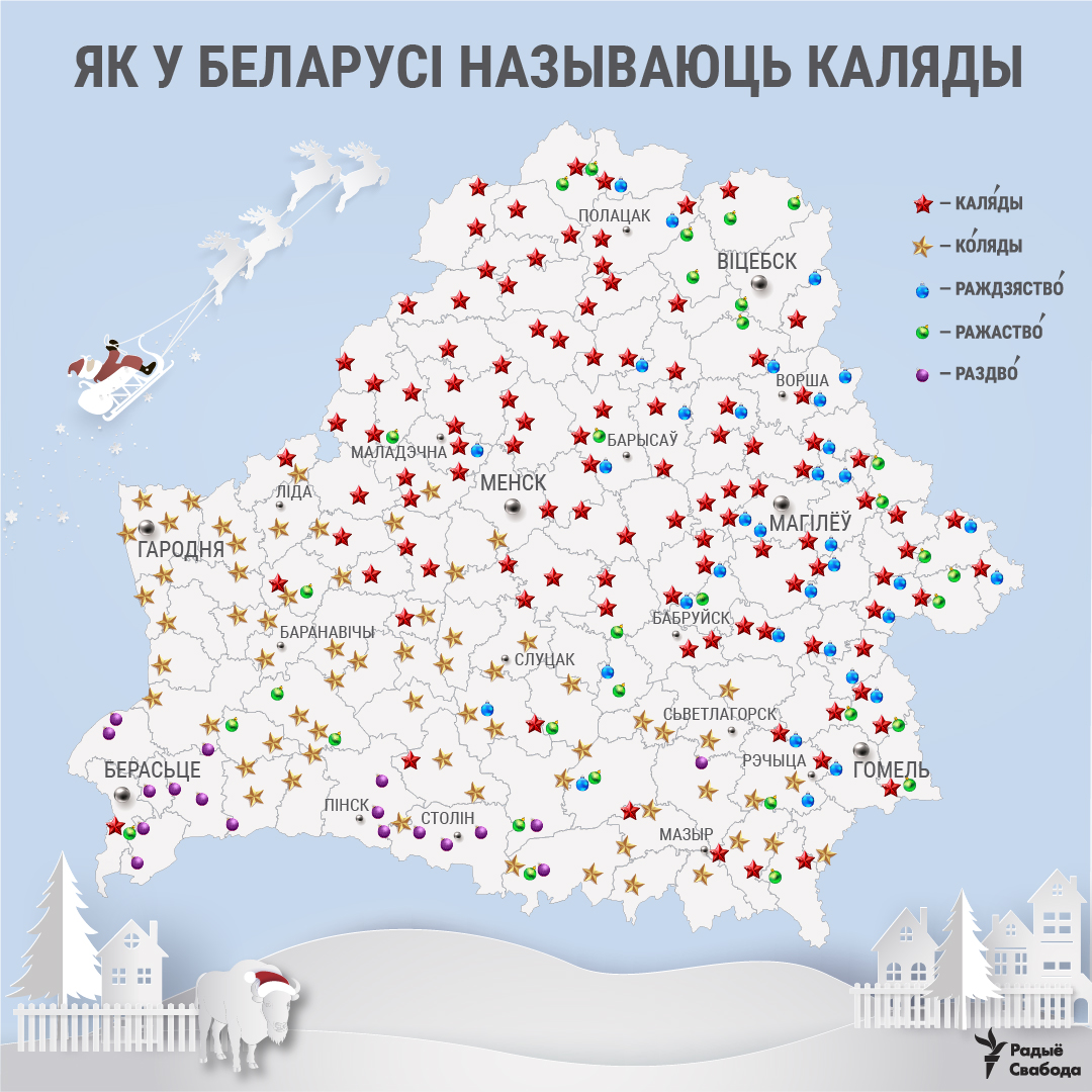 Чаму ў адных мясьцінах зімовыя сьвяты называюць Каляды, а ў іншых — Раство? Свабода працягвае праект „Моўныя мапы“.