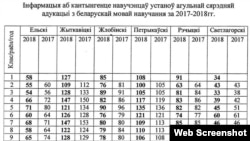 У лісьце прыводзяцца зьвесткі пра стан беларускамоўнай адукацыі, сабраныя абласным інстытутам разьвіцьця адукацыі.