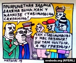 Ды толькі падначаленыя сумняваюцца, што «прэдседацель» дбае найперш пра народ, а ўжо потым пра сябе: «Стабільнасьці ў нас разныя: вы там усе чыстыя, а мы тут гразныя».