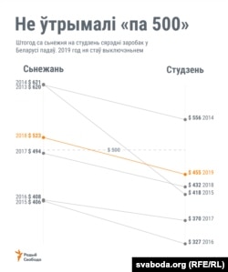 Заробкі «па пяцьсот» даляраў або па 1000 рублёў Аляксандар Лукашэнка абяцае ужо больш за 12 гадоў, але ўтрымаць іх на такім узроўні працяглы час не ўдаецца. «Па пяцьсот», што былі ў сьнежні, былі дасягнутыя ўпершыню за чатыры гады.