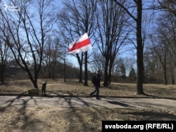 «Гэта наш сьцяг. Я спадзяюся дажыць да тых часоў, калі ён будзе дазволены, а не забаронены, як цяпер. А цяпер я не магу зь ім свабодна прайсьці па Савецкай вуліцы. А хацела б», — кажа жанчына ў прамым эфіры Свабоды.