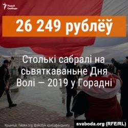 Летась у сьнежні «Арт Сядзіба» абвясьціла краўдфандынг на сьвяткаваньне Дня Волі -— 2019. 19 сакавіка арганізатары кампаніі #БНР101 заявілі, што асноўная акцыя пройдзе ў Горадні 23 сакавіка. Свабода паглядзела, колькі грошай на гэта сабралі.