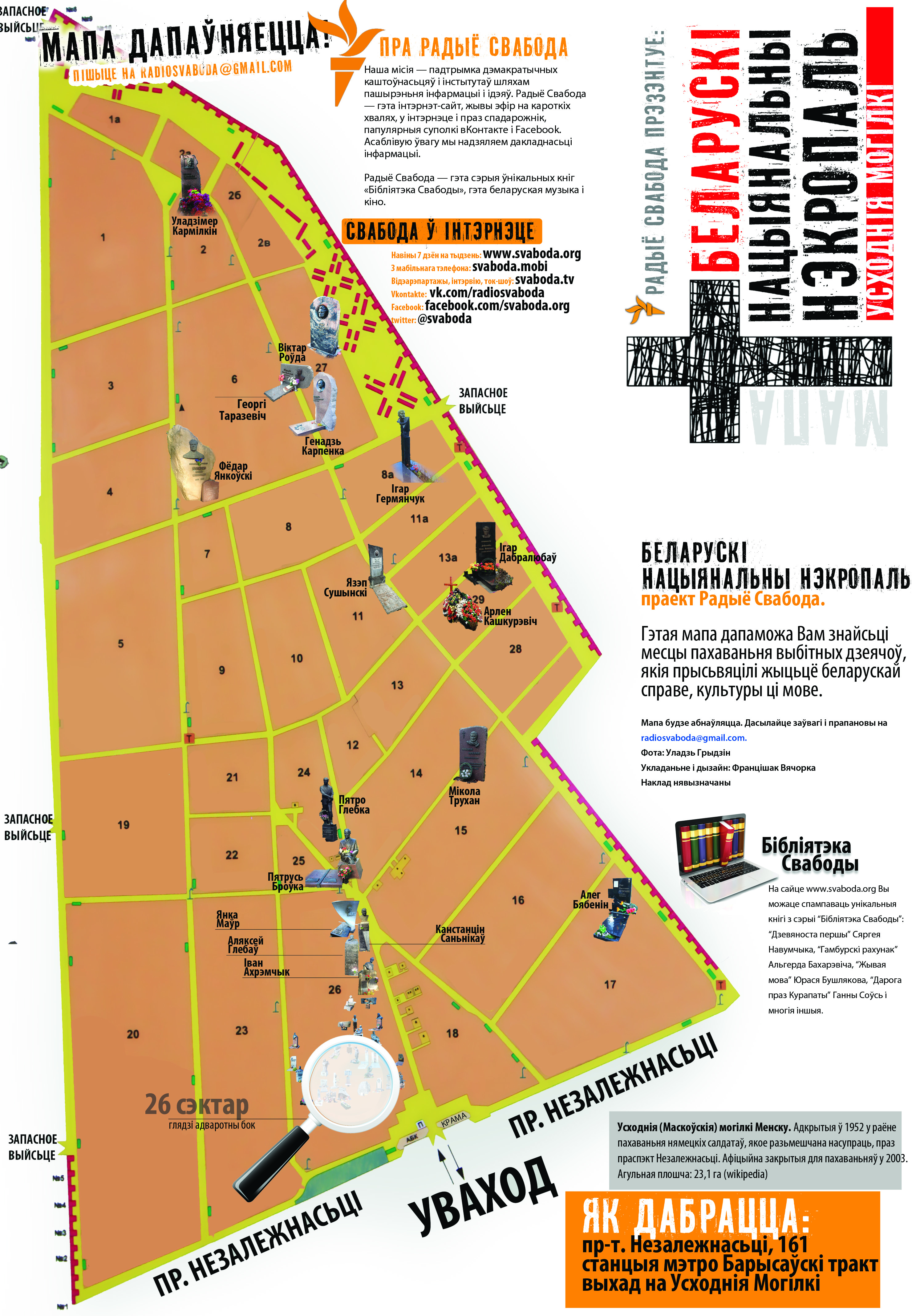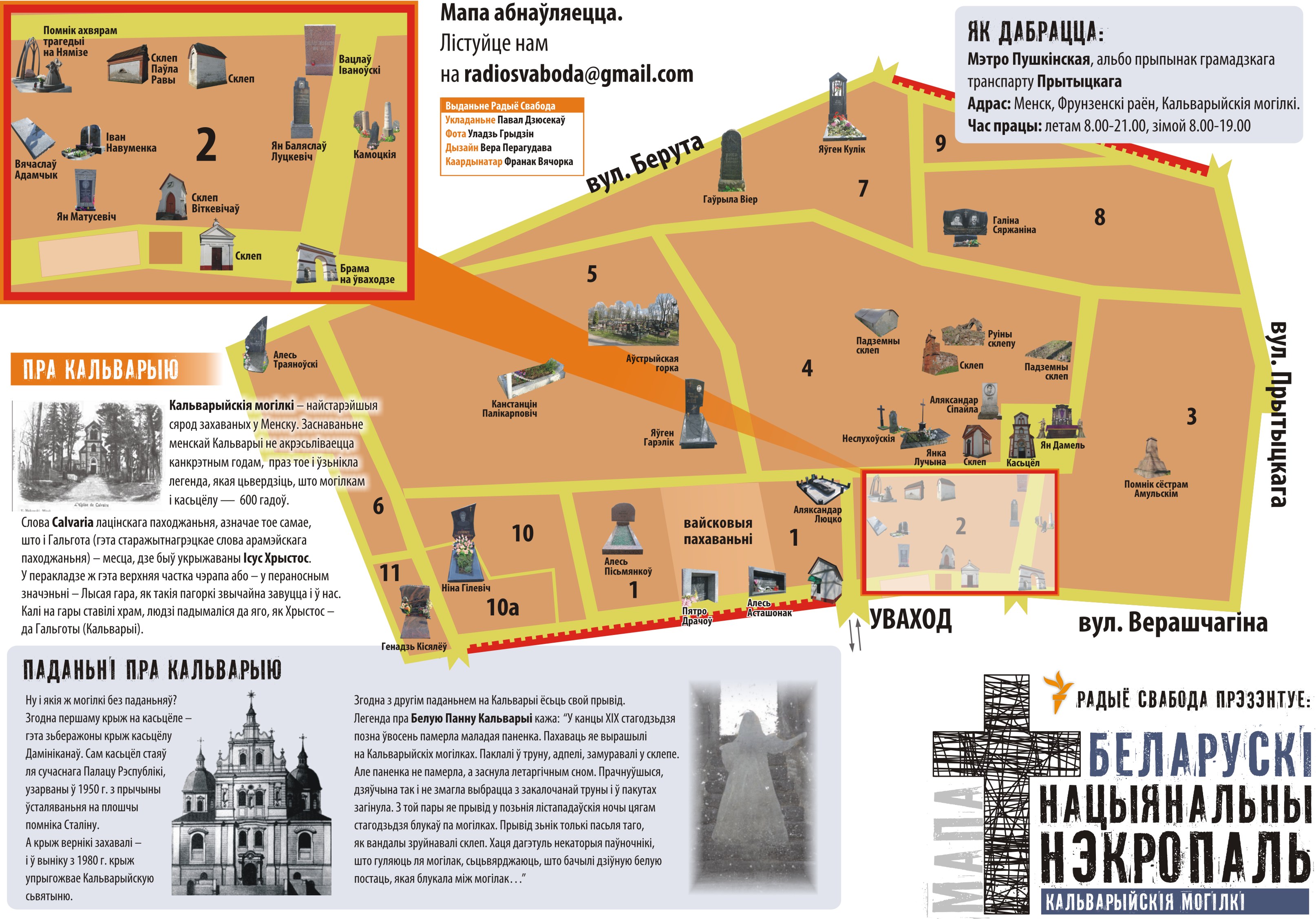 Радыё Свабода падрыхтавала мапы Вайсковых, Кальварыйскіх і Ўсходніх могілак з пазначэньнем месцаў пахаваньня беларусаў, якія прысьвяцілі жыцьцё беларускай справе, культуры і беларускай мове.