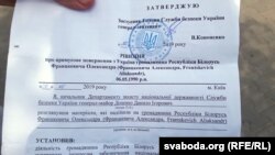 «Супрацоўніца архіва выдала дакумэнт, я расьпісаўся, а на выхадзе мяне затрымалі. Сказалі, што супрацоўнікі СБУ, але прозьвішчаў не назвалі. Паказалі мне дакумэнт — «Рашэньне на прымусовую дэпартацыю», паводле якога на 3 гады мяне выдвараюць з Украіны за тое, што мая дзейнасьць нібыта «супярэчыць інтарэсам гарантаваньня нацыянальнай бясьпекі Ўкраіны».