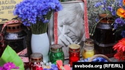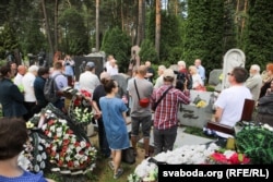 На магілу Быкава ў дзень яго народзінаў прынесьлі валошкі і кнігі. ФОТА