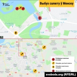 - Збоі пры запусках салютаў адбыліся таксама на пляцоўках ў Чыжоўцы і ва Ўруччы. Паводле відавочцаў, снарады разарваліся нізка над зямлёй.