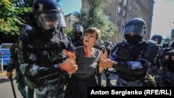 У цэнтры Масквы прайшлі жорсткія затрыманьня гараджанаў, якія пратэстуюць супраць зьняцьця з выбараў у Маскоўскую гарадзкую думу больш чым дваццаці незалежных кандыдатаў.
