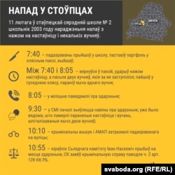 - Паводле сьледзтва 11 лютага ў стаўпецкай сярэдняй школе № 2 вучань 10 клясы напаў з нажом на настаўніцу і трох вучняў.