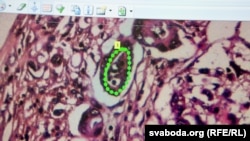 — Мы таксама працуем над гэтым. Зараз ужо тысячы выяўленыя. Але іх эфэктыўнасьць невялікая. Да прыкладу, ёсьць анкамаркеры на рак яечнікаў, кішэчніка, падстраўнікавую залозу, лёгкае. Але іх эфэктыўнасьць невялікая. Прыблізна 20% мы трапляем у кропку, а 80% — міма. А вось эфэктыўнасьць анкамаркера раку прастаты — 60-70%. І ня толькі мы, увесь сьвет працуе, каб знайсьці маркеры, якія па аналізу крыві могуць вызначыць анкалягічную хваробу...