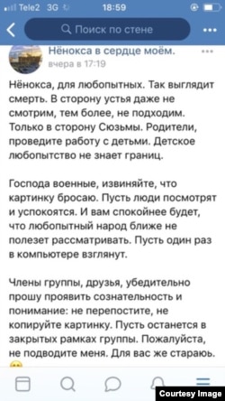 Аўтар гэтага запісу ў камэнтары таксама просіць не распаўсюджваць фатаграфію за межы групы. Карыстальнік, які даслаў здымкі Радыё Свабода, тлумачыць, што сам атрымаў іх ужо ў выглядзе скрыншотаў. Зрэшты, адна з жыхарак вёскі, якая ўдзельнічае ў цяпер закрытай групе «Нёнокса — в сердце моем» пацьвердзіла, што гэты запіс там публікавалася. Яны не пагадзілася пераслаць арыгінальны здымак ў больш высокай якасьці.