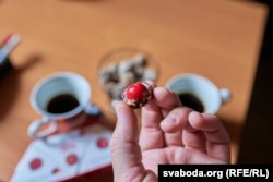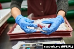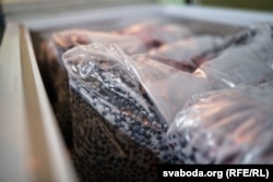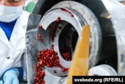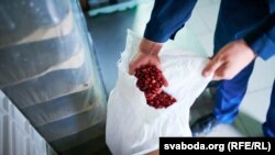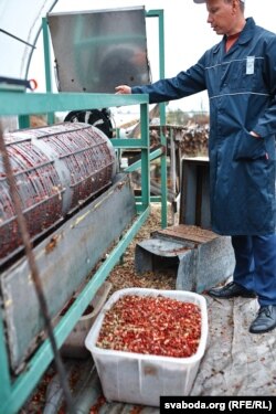 «Кожны год людзі актыўна здаюць ягады. Мы зьвяртаемся да аптавікоў, маем і пастаянных зборшчыкаў, якія зьбіраюць чыста. Вось гэтыя — ідэальныя, бяз моху», — раскрывае прывезены раніцай мех Васіль. — Іх застаецца толькі пракалібраваць.