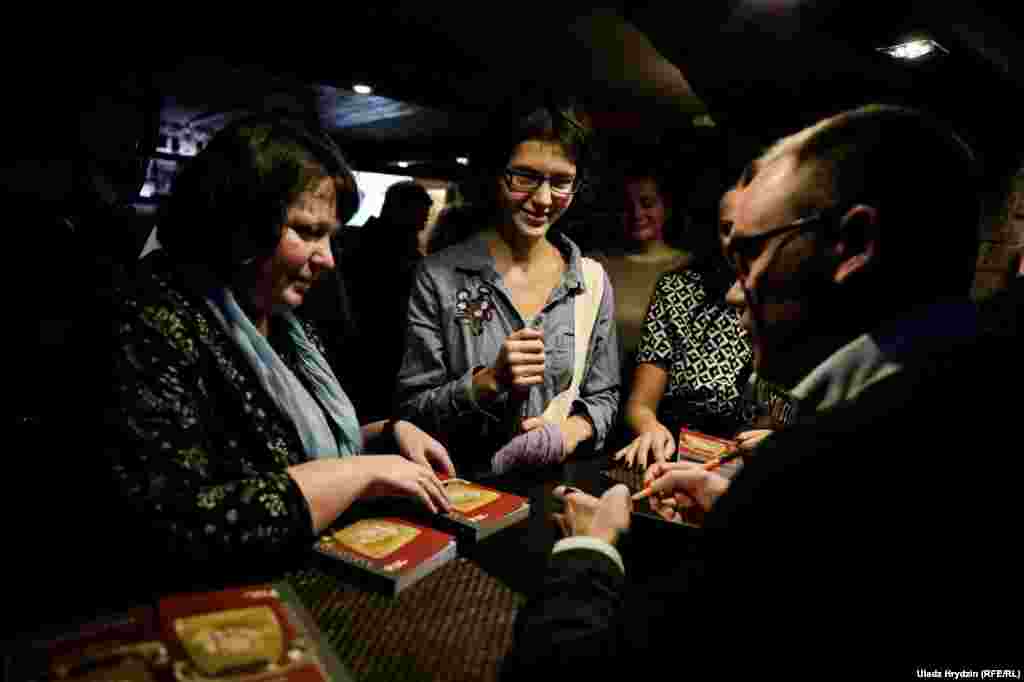 Алесь Пілецкі падпісвае кнігі сваім чытачкам