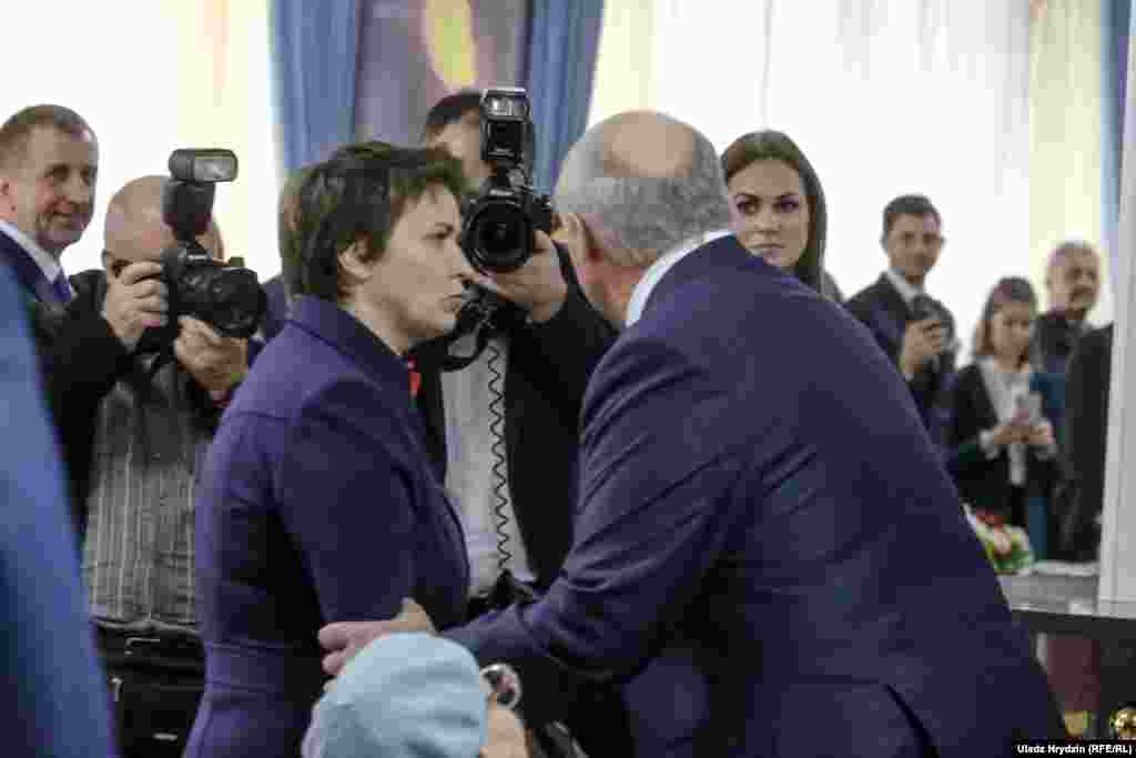 На ўчастак ён прыехаў прыкладна ў 11:20, гэтым разам адзін, без малодшага сына Мікалая, павітаўся з участковай камісіяй, назваўшы іх «байцамі бачнага фронту». Яго сустракалі кіраўніца адміністрацыі Натальля Качанава і іншыя чыноўнікі.