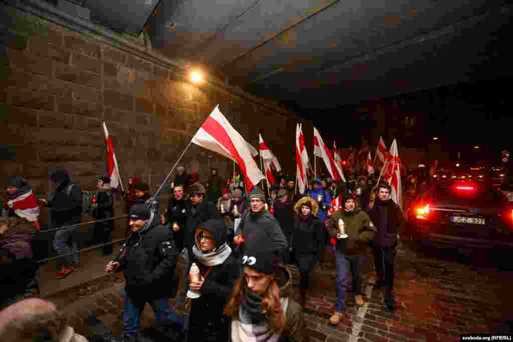Lithuania - Belarusians marching through Vilnius streets to honour reburied 1863 heroes, 23Nov2019