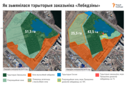 За апошнія гады ад тэрыторыі заказьніка «Лебядзіны» каля Менску адрэзалі пад будаўніцтва 8 га зямлі. Свабода прасачыла, як мяняліся межы «Лебядзінага» і як заказьнік атачае забудова.