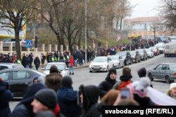 14:25 Калёна расьцягнулася на некалькі сотняў мэтраў уздоўж вуліц Валадарскага і Рэвалюцыйнай. На заклік Паўла Севярынца людзі ідуць да плошчы Свабоды. Там мае адбыцца наступны прыпынак шэсьця — пратэсту супраць паглыбленьня інтэграцыі з Расеяй.