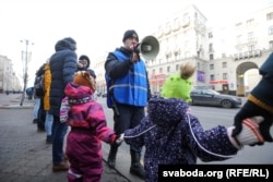Севярынец спраўджвае ў мітынгоўцаў, ці ўсе цёпла апрануліся, ці ўзялі ссабойкі і гарбату, бо «акцыя будзе доўгай». Праваахоўнікі і «людзі ў цывільным» не чапаюць пратэстоўцаў.