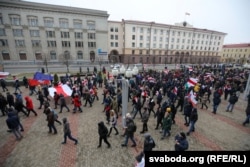 15:00 Ад ратушы людзі рухаюцца да Кастрычніцкай плошчы, дзе пачаўся пратэст супраць паглыбленьня інтэграцыі з Расеяй а 12-й гадзіне.