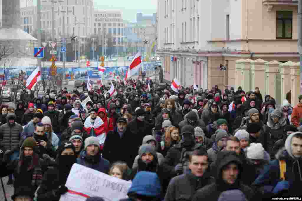 Пасьля выступаў палітыкаў і пісьменьнікаў на Кастрычніцкай плошчы, пратэстоўцы прайшлі шэсьцем па праспэкце Незалежнасьці да плошчы Незалежнасьці.