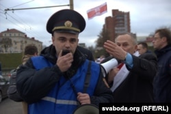 Міліцыянт папярэдзіў удзельнікаў пра адказнасьць за ўдзел у несанкцыянаваным мерапрыемстве.