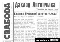 У першым нумары новага, 1995 году загаловак: «СВАБОДУ зноў забараняюць». Дом друку адмовіўся друкаваць газэту з дакладам Сяргея Антончыка. Мы выпусьцілі яго нелегальна накладам 100 тысяч асобнікаў, паведамлялася чытачам. Увесь наклад быў распаўсюджаны «з рук».
