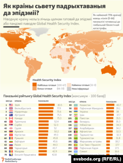 Паводле рэйтынгу, які вызначае ўзровень бясьпекі ў галіне аховы здароўя — Global Health Secirity Index, ніводную краіну сьвету нельга лічыць цалкам гатовай да эпідэміі або пандэміі.