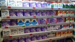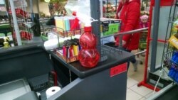 У найбуйнейшай гомельскай краме «Еўраопт» на вуліцы Хатаевіча ў час абеду не назіраецца наплыву пакупнікоў. Паліцы дэманструюць гатоўнасьць да падвышанага попыту на стратэгічныя тавары: крупы, макарону, тушонку.