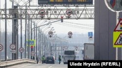 На дарозе стаіць машына беларускай мытнай службы, час ад часу мытнікі выходзяць з машыны, спыняюць легкавыя аўтамабілі, у тым ліку з расейскімі нумарамі, размаўляюць пра нешта з кіроўцамі і адпускаюць іх.
