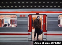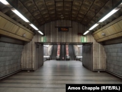 Пусты ўваход на станцыю мэтро а 7:36 раніцы 17 сакавіка. У звычайныя дні ў гэты час станцыі запоўненыя людзьмі. Маршруты грамадзкага транспарту ў Празе функцыянуюць, але пасажыраў вельмі мала.