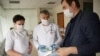 Адразу памералі тэмпэратуру, зрабілі агляд і накіравалі ў аддзяленьне. Там супрацоўнікі ў поўным рыштунку: у масках, акулярах, пальчатках. На абход лекары прыходзілі ў сродках засьцярогі. Паўсюль антысэптыкі, антыбактэрыяльнае мыла.