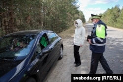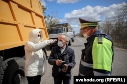 Супрацоўнікі ДАІ прыпыняюць машыны, пытаюцца пра самаадчуваньне кіроўцаў. Потым эпідэміёляг правярае тэмпэратуру і правярае, ці чалавека няма ў сьпісе тых, хто мусіць быць у самаізаляцыі.