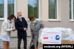 Шэсьць грузавікоў гуманітарнай дапамогі беларускім мэдыкам прыехалі з Польшчы 24 красавіка. Гэта падарунак ад польскага ўраду беларускаму.