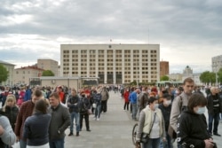 Пікет яе прыхільнікі разгарнулі насупраць гарвыканкаму.