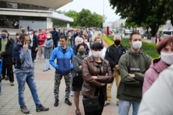 Жыхары Гомля 28 траўня выстраіліся ў чаргу, каб пакінуць подпіс за Сьвятлану Ціханоўскую, якая вылучаецца кандыдатам на прэзыдэнта.