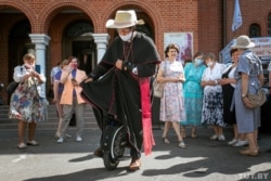 «Мне вельмі не хацелася адмаўляцца ад пілігрымак. Трохі падумаў і вырашыў, што можна знайсьці бясьпечны варыянт для праходжаньня шляху», — тлумачыць сьвятар выбар такога віду транспарту: у гэтым годзе традыцыйнае паломніцтва адмянілі з прычыны пандэміі каранавірусу.