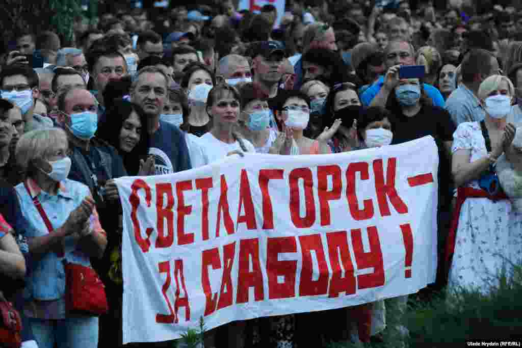 У Гомлі прайшоў агітацыйны пікет кандыдаткі на прэзыдэнта Сьвятланы Ціханоўскай, на які прыйшлі, як найменей,10 тысяч чалавек.