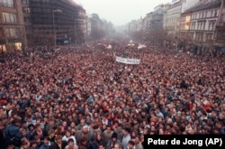 Лістапад 1989, Вацлаўская плошча ў Празе Photo: Petar Kujundzic (Reuters)