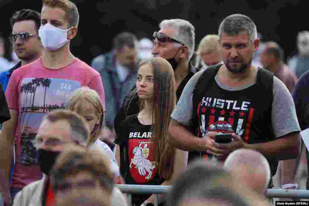 Людзі стаялі таксама за агароджай, не праходзячы праз прапускныя пункты. З боку вуліцы Карастаянавай выстраіліся чэргі даўжынёй каля 100 мэтраў.