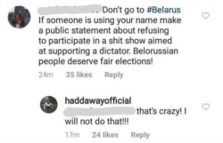 Беларусы сталі пісаць Haddaway у Інстаграме з заклікамі адмовіцца ад удзелу ў праўладным канцэрце ў падтрымку «дыктара Лукашэнкі».