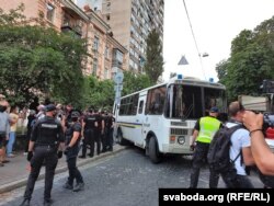 Пазьней каля амбасады затрымалі 5 асобаў. Сярод іх маглі быць і грамадзяне Беларусі. Іх вывезлі ў аўтобусе.