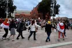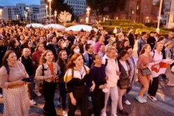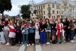 Жанчыны на праспэкце Незалежнасьці ў Менску сталі ў кола і сьпяваюць «Купалінку», а таксама водзяць карагоды.