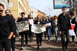 12:57 Навуковыя супрацоўнікі БДУ сказалі, што выйшлі на марш, каб падтрымаць студэнтаў. Яны кажуць, што сьвяткуюць дзень ведаў. «Маладыя больш рашучыя, мне здаецца, што гэта генэтычнае пачуцьцё страху», — сказала жанчына.
