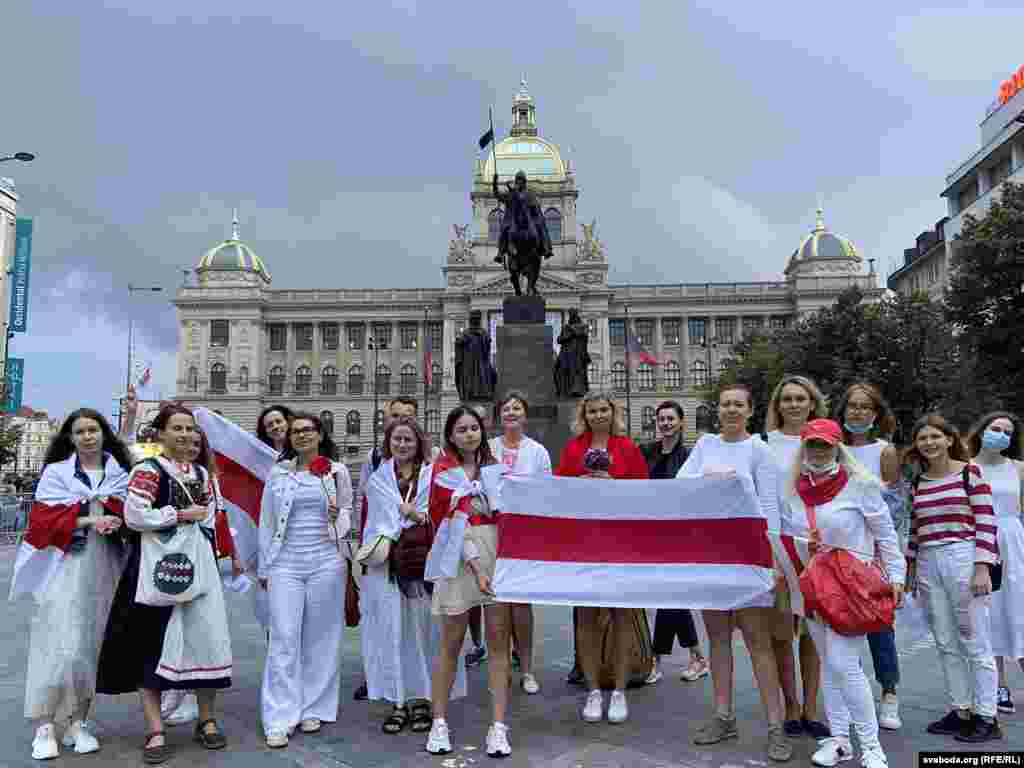 У суботу 5 верасьня, у дзень жаночых маршаў у Менску і іншых гарадах Беларусі, беларускі Прагі таксама арганізавалі акцыю салідарнасьці на Вацлаўскай плошчы.