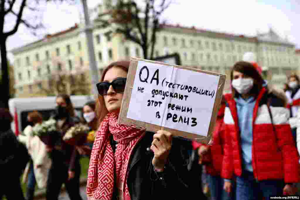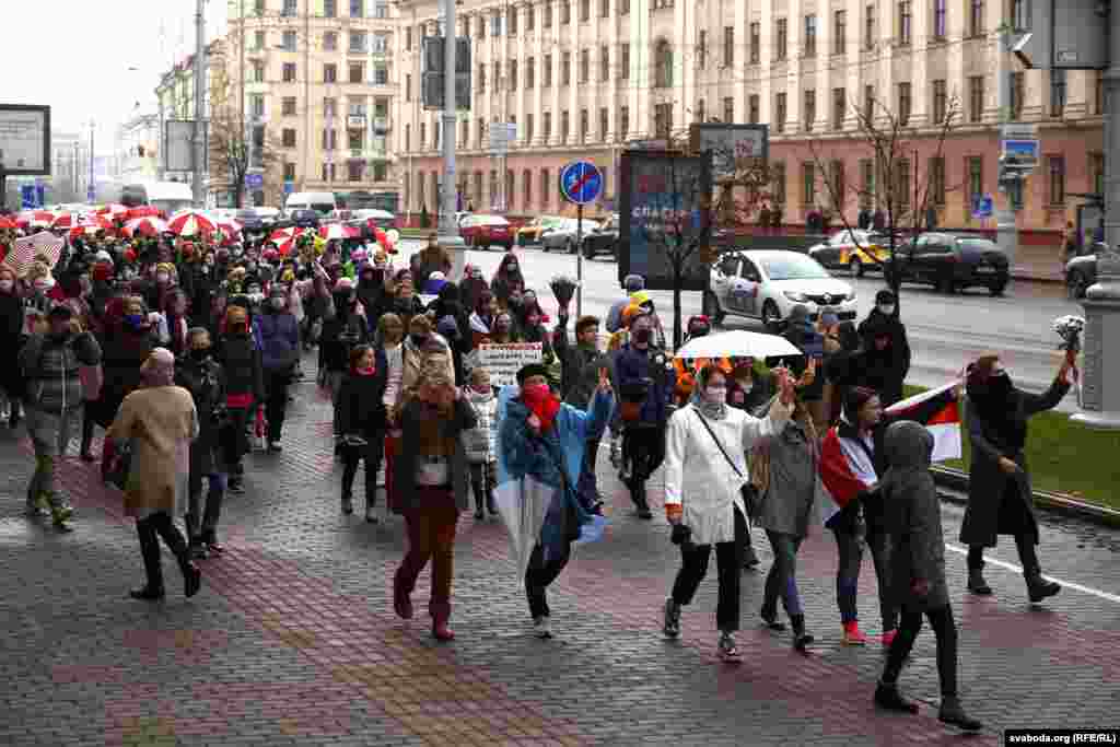 Удзельніцы акцыі сабраліся ў сквэры Сымона Балівара і прайшлі маршам ад Першамайскай да плошчы Перамогі і пасьля па праспэкце Незалежнасьці да Акадэміі Навук, адкуль зноў вярнуліся на плошчу Якуба Коласа.